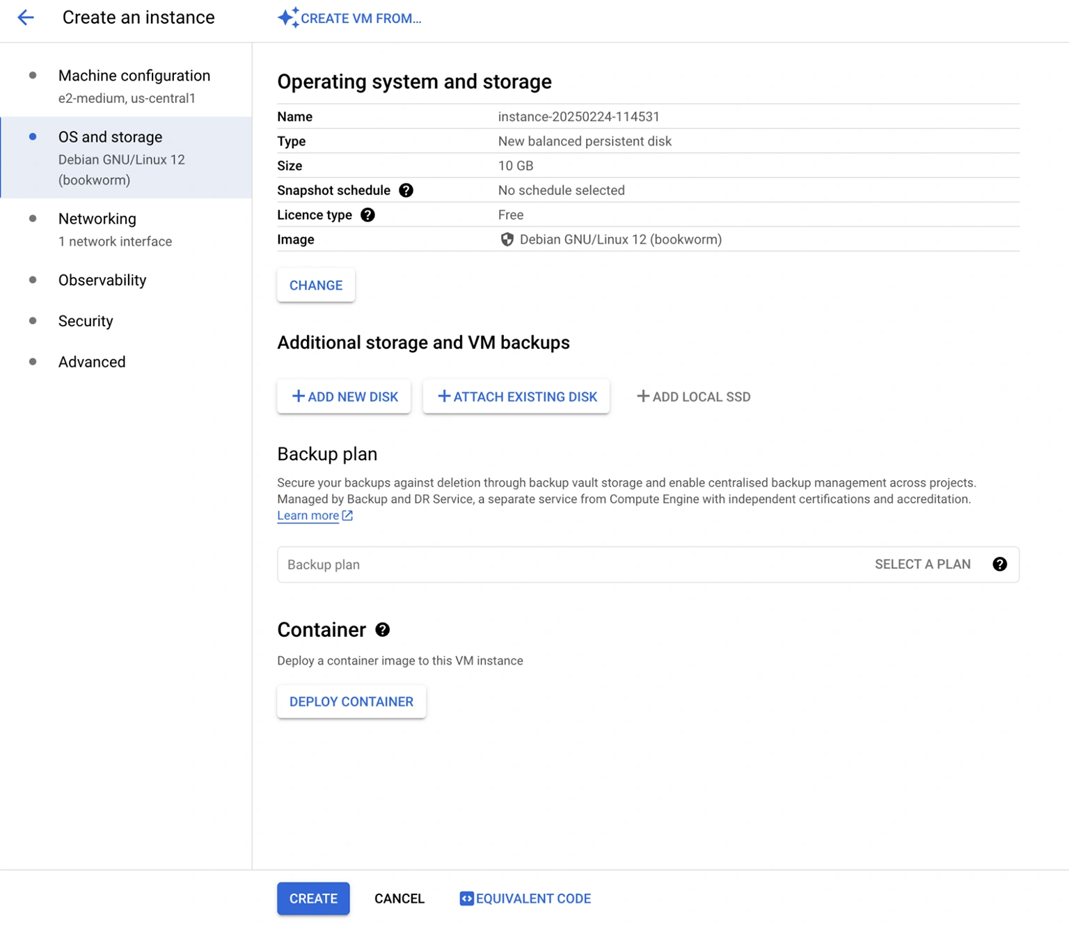 - When you scroll down next, you can choose if you have to deploy container images on your VM that are useful in development environments and other special circumstances.