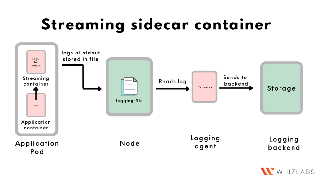 A streaming sidecar container can be configured to read logs from the other containers running in the pod. The sidecar can then output the logs into stdout/stderr from where Kubernetes will write them into a file. This approach is helpful in case some containers don’t write to a stdout/stderr by default.